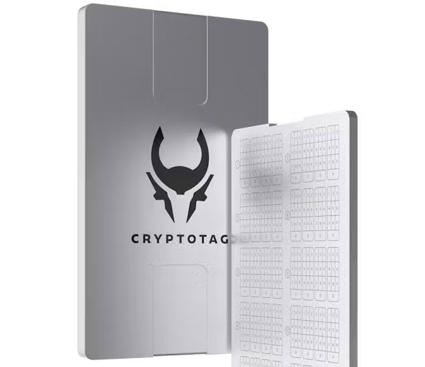 Cryptotag Zeus is a top-tier metal Bitcoin backup solution crafted from high-grade titanium to offer maximum protection for your crypto seed phrases. Like the Steelwallet, setting up the Cryptotag Zeus involves recording your seed phrase numbers on conversion sheets and then carefully stamping each number onto the titanium plates.